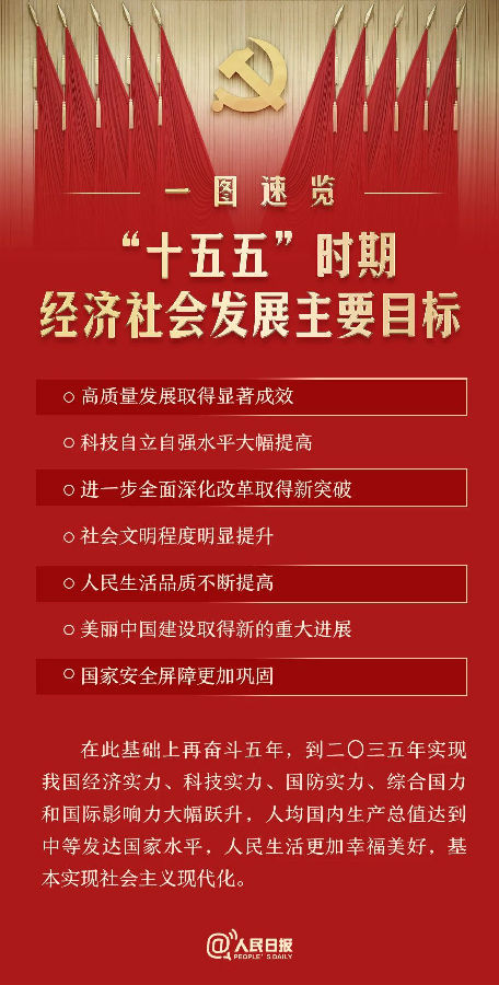 高质量发展取得显著成效,科技自立自强水平大幅提高,进一步全面深化改革取得新突破,社会文明程度明显提升,人民生活品质不断提高,美丽中国建设取得新的重大进展,国家安全屏障更加巩固。在此基础上再奋斗五年,到二〇三五年实现我国经济实力、科技实力、国防实力、综合国力和国际影响力大幅跃升,人均国内生产总值达到中等发达国家水平,人民生活更加幸福美好,基本实现社会主义现代化。