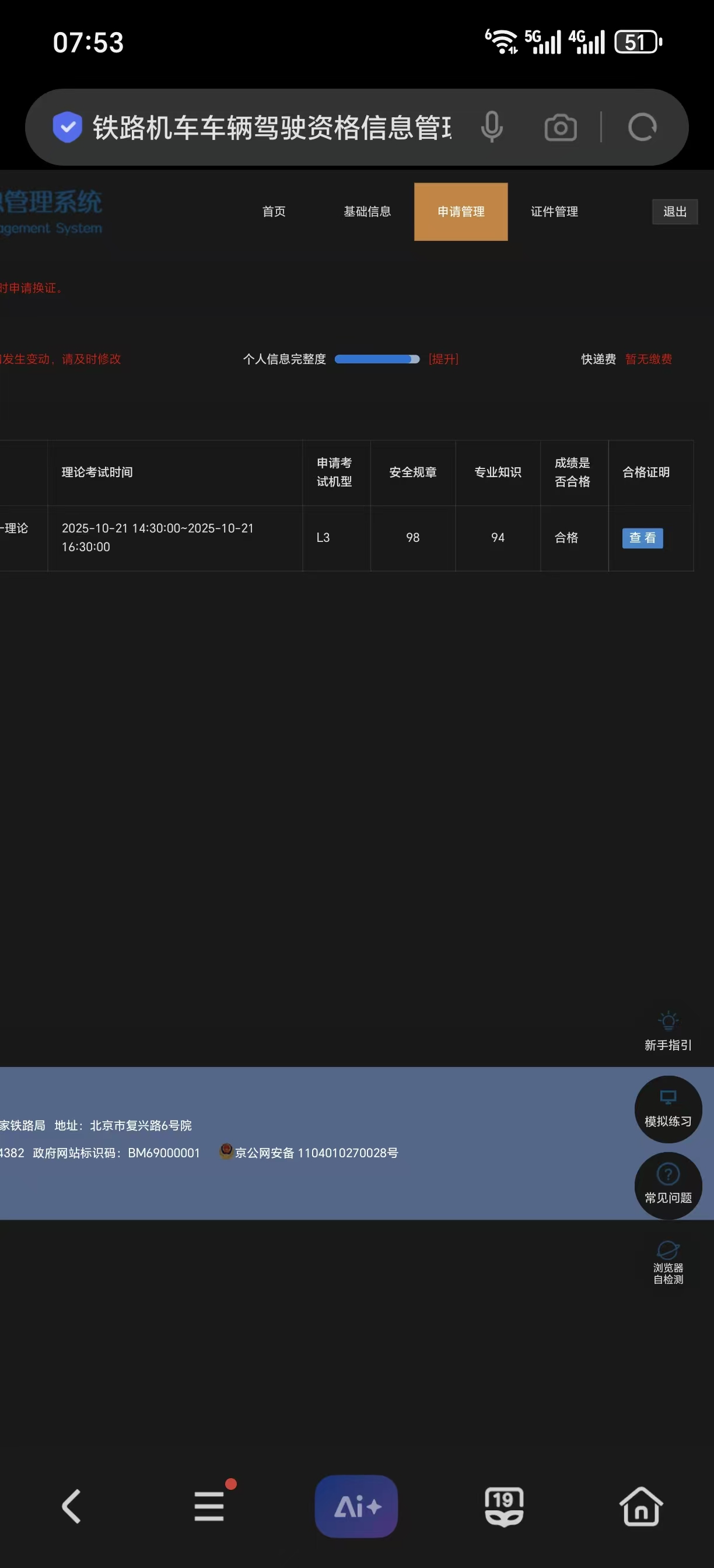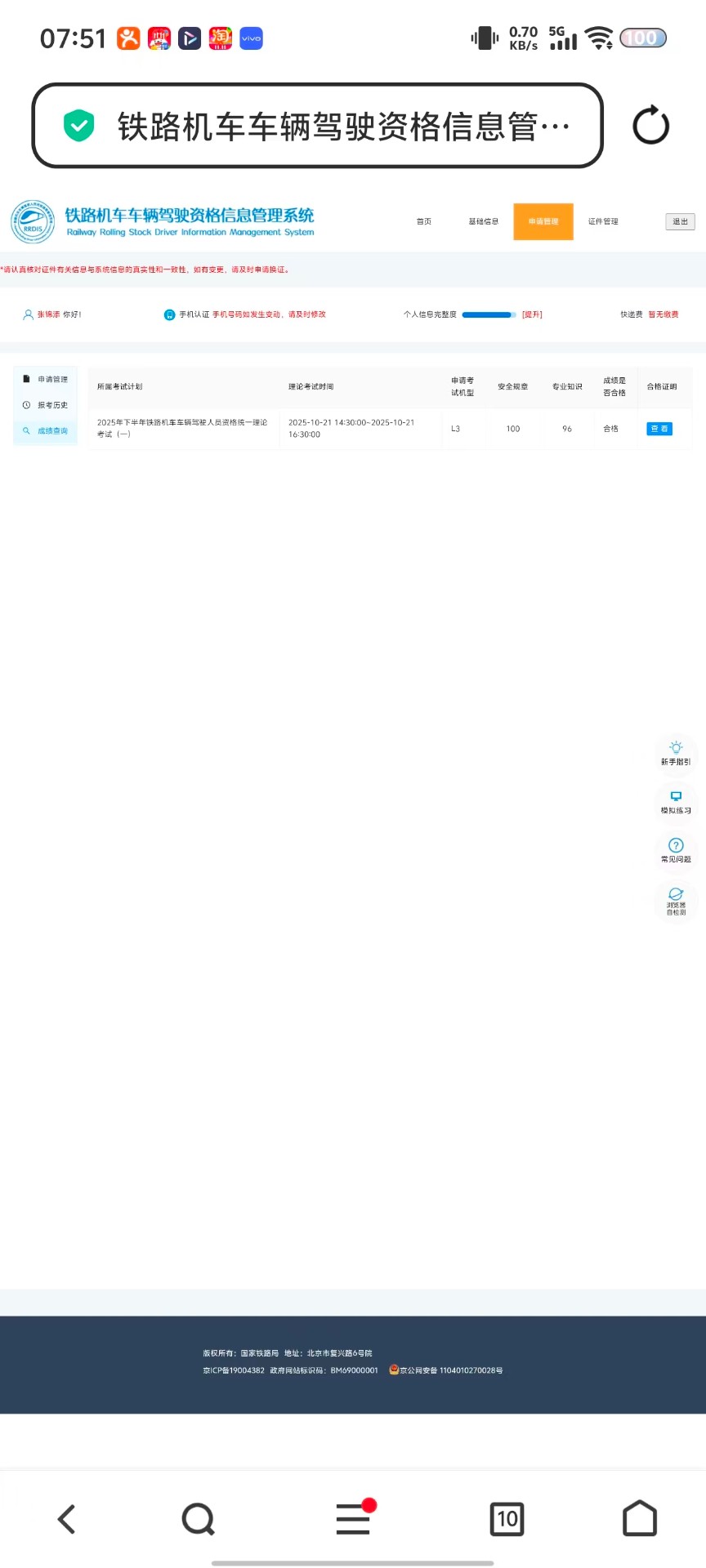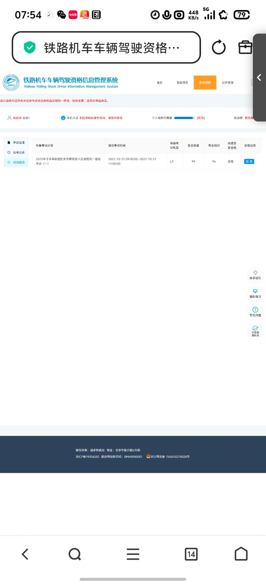 热烈祝贺铁宇集团2025年下半年国家铁路机车车辆驾驶人员资格考试过关率高达94.3%金秋送爽,捷报频传!2025年下半年国家铁路局铁路机车车辆驾驶人员资格考试成绩今日重磅揭晓,铁宇学子成绩优异,取得了94.3% 的高通过率!成绩展示
