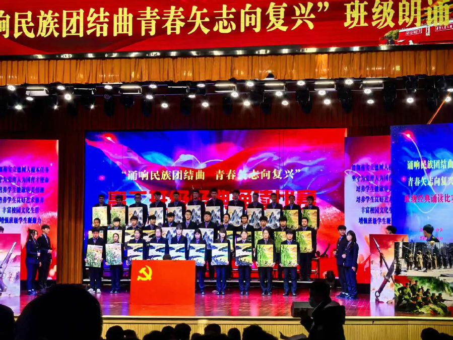 兴和县第一中学/兴和县职业高中举行高二年级“诵响民族团结曲,青春矢志向复兴”班级经典诵读比赛中,共有21个班级(含普高与职高班级)同台竞技。24级铁宇班凭借其极具感染力与思想深度的表现,在激烈角逐中脱颖而出,最终荣获二等奖。尤为可贵的是,我们以职高学子的身份,用一场关于民族气节与英雄精神的深情演绎,赢得了全场评委与师生的高度认可,实现了文化素养与精神风貌的精彩展示。