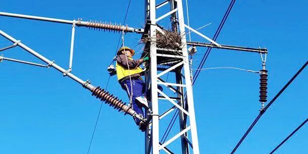 因为电气化铁路沿线的接触网支柱高,又坚固耐用,特别受鸟儿们青睐,成了它们安家的最佳场所。在接触网隔离开关底座、硬横梁吊柱底座、钢柱铁塔等处,工作人员经常可以看见鸟儿用从四处衔来的树枝、铁丝、渔网碎片、草杆等材料精心布置的鸟巢。