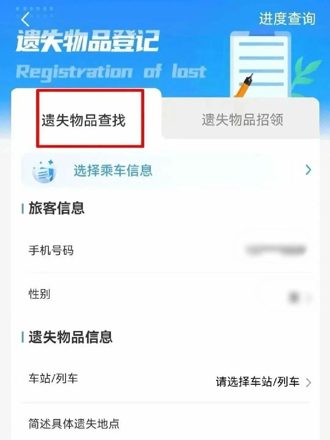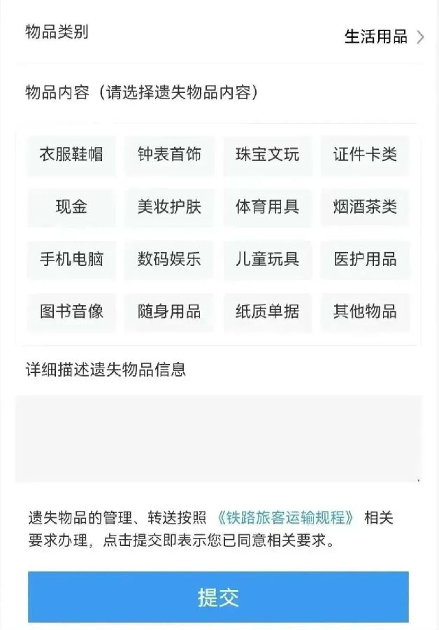 登记遗失物品信息