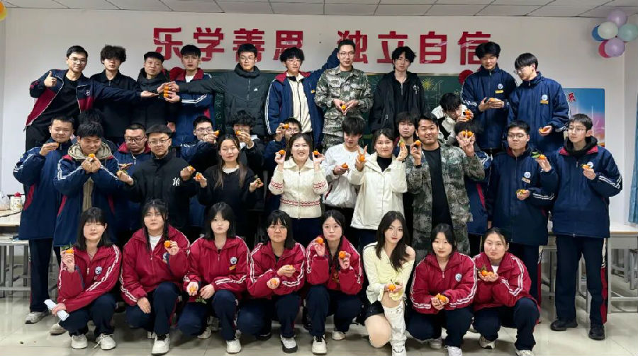 晚会筹备组的同学们早早将教室布置一新。课桌拼成温馨的长桌,各类时令水果、可口零食和缤纷饮料铺陈其上,橙子的清香、薯片的脆响、糖果的甜蜜,为这个夜晚增添了欢乐的滋味。