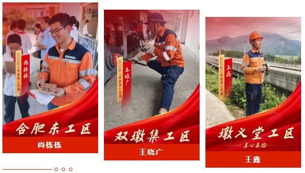 王晓广、尚栋栋、王鑫在2025年中铁电气化局合肥维管段“员工之星”以寻找“真心英雄”为主题评选活动中,凭借卓越的专业技能、扎实的工作作风和突出的岗位贡献,在激烈的评选中脱颖而出,荣耀上榜!