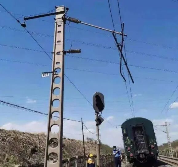 2021年5月4日消息,受大风天气影响,津山线唐山至狼窝铺间接触网被大风掀起的彩钢板砸坏,导致K2047次及后续部分列车晚点运行。