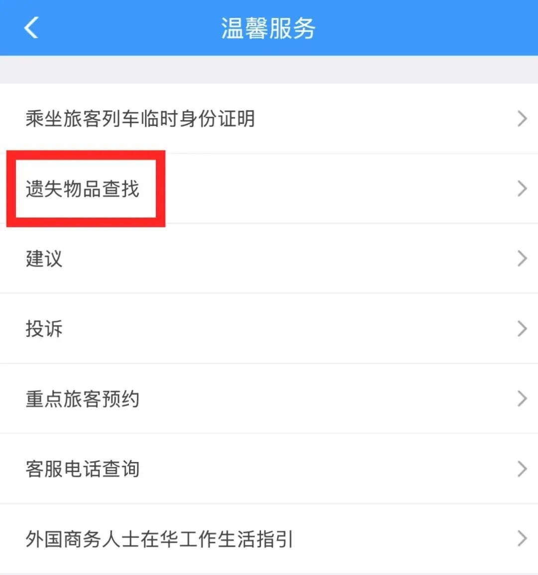 在“遗失物品查找”页面