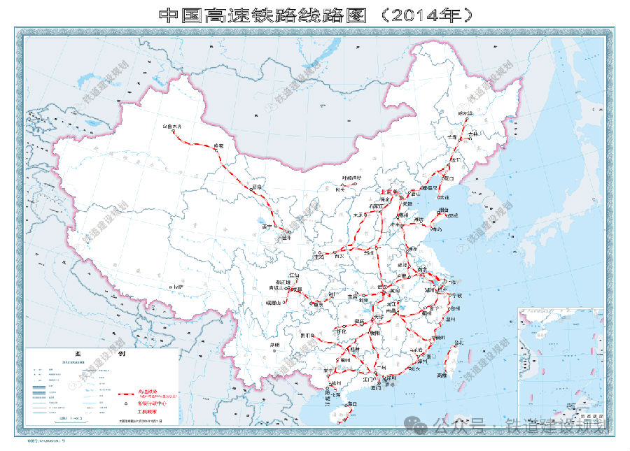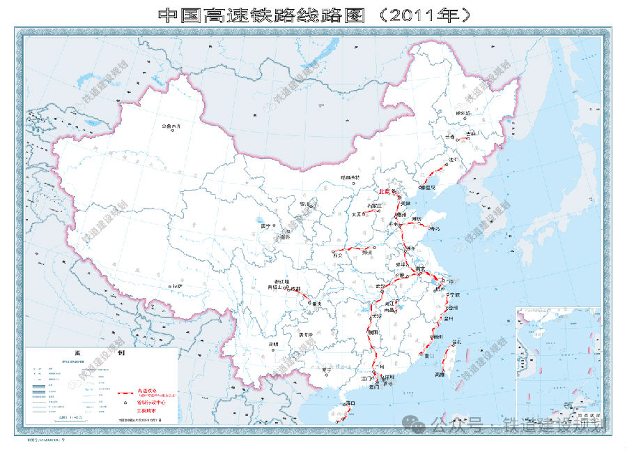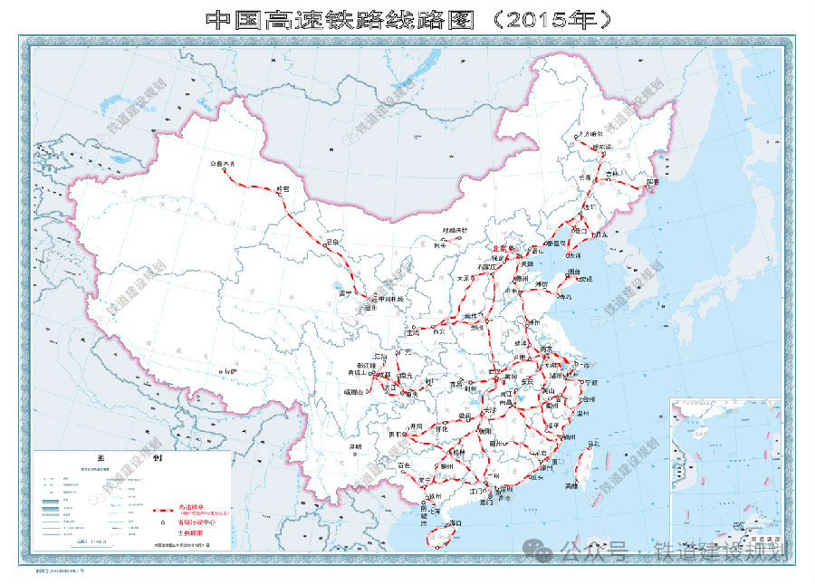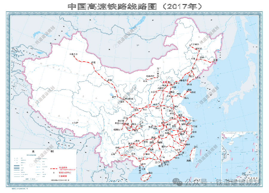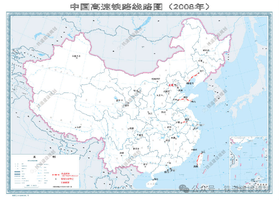 建成通车,拉开了全国高铁建设的序幕;2008年建成了我国首条时速350公里的高铁京津城际铁路;2009年建成武广高铁,标志着“四纵四横”高铁网建设全面铺开;2016年国家中长期铁路规划提出建设“八纵八横”高铁通道,规划总规模约4.5万公里,目前已建成投产约82%,在建约14%。